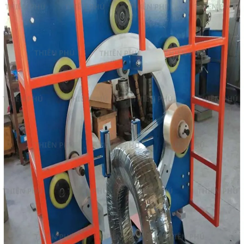 ម៉ាស៊ីនរុំខ្សែភាពយន្តសំបកកង់ គឺជាឧបករណ៍វេចខ្ចប់ឯកទេស ដែលប្រើសម្រាប់រុំស្រទាប់ការពារជុំវិញផលិតផលរាងមូល ដូចជា សំបកកង់ ខ្សែរមៀល ដែករមៀល ឬវត្ថុដែលមានរាងជាវង់។ ម៉ាស៊ីនជួយបង្កើតស្រទាប់បិទខ្ចប់រឹងមាំ និងស្មើគ្នា ដើម្បីការពារផលិតផលពីធូលី សំណើម និងឥទ្ធិពលបរិស្ថានក្នុងអំឡុងពេលផ្ទុក និងដឹកជញ្ជូន។