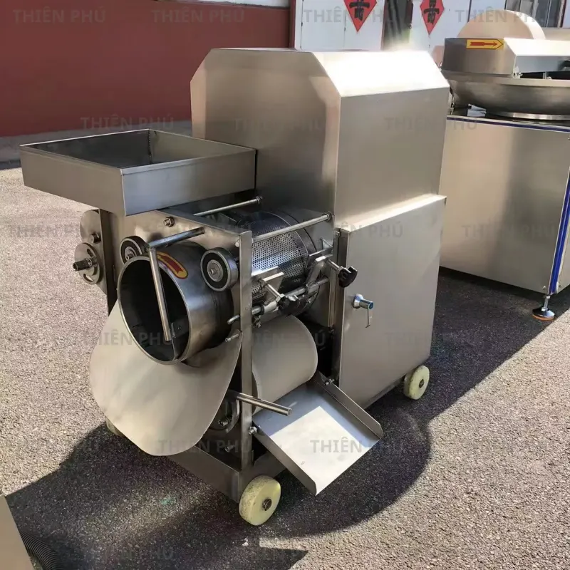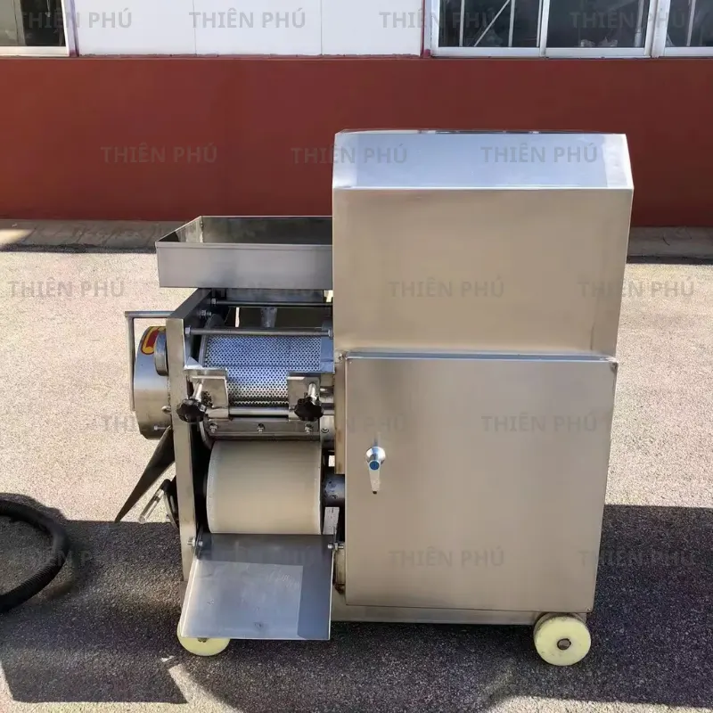 ម៉ាស៊ីនបំបែកឆ្អឹងត្រី SH-051 គឺជាឧបករណ៍ឯកទេសមួយដែលជួយញែកឆ្អឹង និងស្បែកចេញពីសាច់ត្រីបានយ៉ាងឆាប់រហ័ស ដែលជួយសន្សំសំចៃពេលវេលា និងការខំប្រឹងប្រែងសម្រាប់កន្លែងកែច្នៃ។ ម៉ាស៊ីននេះប្រើឧបករណ៍រំកិលចុចរួមផ្សំជាមួយសំណាញ់តម្រងដើម្បីកិន និងចុចសាច់ត្រីតាមរយៈរន្ធតម្រង ដោយរក្សាឆ្អឹង និងស្បែកនៅខាងក្រៅ ធានាថាសាច់រលោង ស្អាត និងមានគុណភាពខ្ពស់។ ម៉ាស៊ីនទាំងមូលត្រូវបានផលិតពីដែកអ៊ីណុក ប្រឆាំងនឹងច្រែះ ងាយស្រួលសម្អាត និងបំពេញតាមស្តង់ដារសុវត្ថិភាពចំណីអាហារ។ SH-051 ដំណើរការប្រកបដោយស្ថេរភាព ជាមួយនឹងផលិតភាពសមស្របសម្រាប់កន្លែងផលិតខ្នាតតូច និងមធ្យម ជាពិសេសមានប្រសិទ្ធភាពនៅពេលកែច្នៃត្រីទៅជានំត្រី បាល់ត្រី ស៊ូរីមី ឬផលិតផលអាហារសមុទ្រសុទ្ធ។