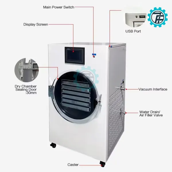 ម៉ាស៊ីនសម្ងួតបង្កកដោយម៉ាស៊ីនបូមធូលី TF-HFD-4 គឺជាឧបករណ៍ទំនើបមួយដែលអនុវត្តបច្ចេកវិទ្យាសម្ងួតបង្កកកម្រិតខ្ពស់ ដែលជួយរក្សារសជាតិ ពណ៌ រូបរាង និងតម្លៃអាហារូបត្ថម្ភរបស់ផលិតផលបន្ទាប់ពីសម្ងួត។ នេះគឺជាម៉ាស៊ីនដ៏ល្អសម្រាប់រោងចក្រកែច្នៃអាហារលំដាប់ខ្ពស់ ឱសថ ឱសថ និងផលិតផលជីវសាស្រ្ត។